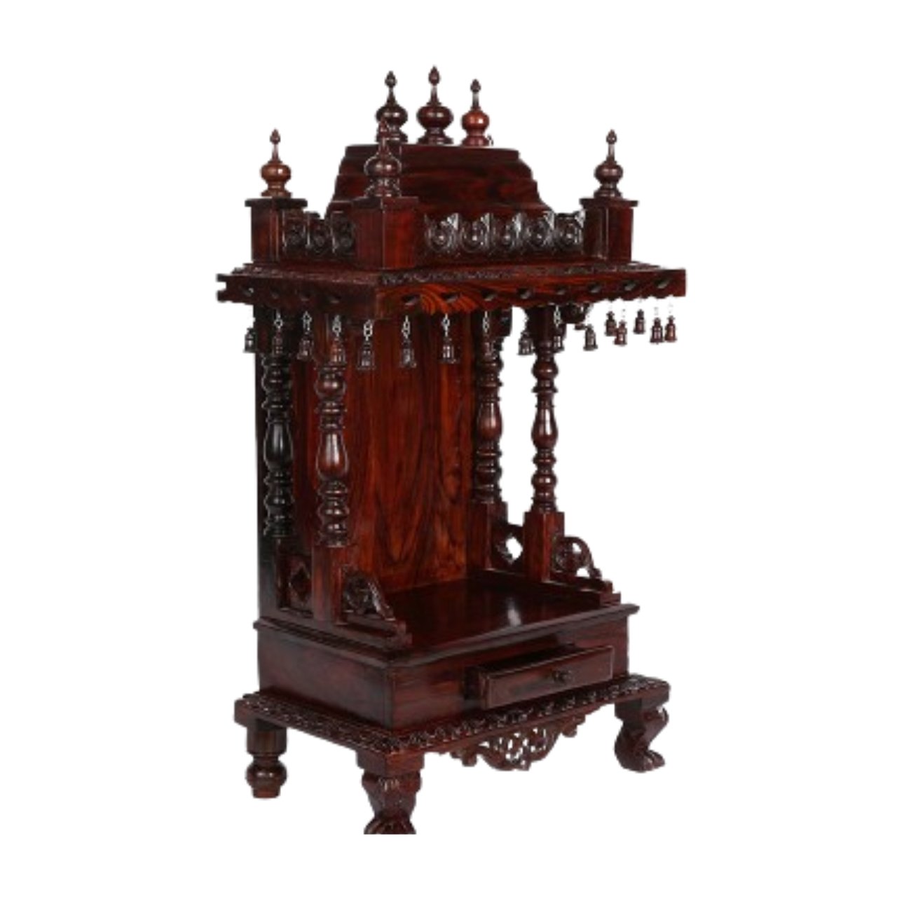 Rosewood is a prized wood known for its rich color, distinctive grain patterns, and exceptional durability. The Enduring Legacy: Handcrafted Rosewood Mandir celebrates the natural beauty of this wood, making it a fitting material for a sacred space. The warm tones and subtle variations in grain create a visually captivating piece that inspires devotion and reflects the enduring legacy of spiritual traditions.